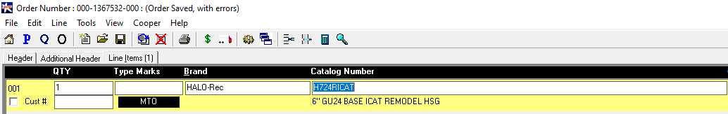The catalog number is populated in the SI. The price range is displayed on saving:
