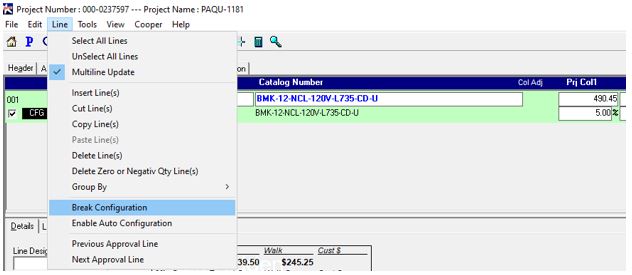 Step 3: Select the check box of the line item for which you want to break configuration.