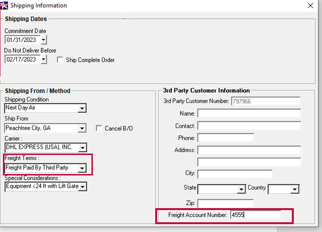 Shipping Requests can be made by using the "truck" icon above the line items.